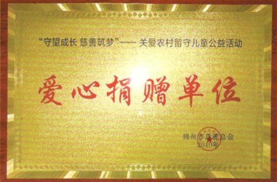 在“守望成長、慈善筑夢”關(guān)愛農(nóng)村留守兒童公益活動(dòng)中,公司被錦州市慈善總會(huì)授予“愛心捐贈(zèng)單位”榮譽(yù)稱號(hào)。