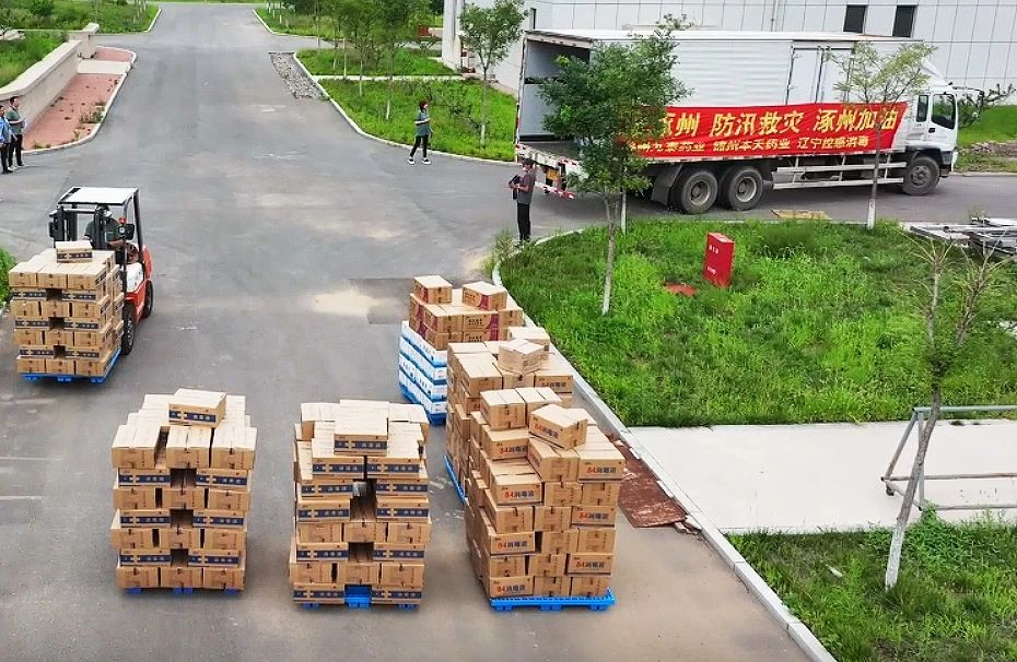 8月5日到7日,錦州九泰藥業(yè)及集團下屬錦州本天藥業(yè)、遼寧控感消毒科技公司三家企業(yè)上下聯(lián)動,全力組織員工從三家企業(yè)庫房緊急調(diào)配包括復(fù)方氯己定撒粉、復(fù)方紫荊皮水楊酸溶液、硫酸慶大霉素碳酸鉍膠囊、蒲地藍消炎片、對乙酰氨基酚片、氨咖黃敏膠囊、乙醇消毒液、84消毒液、碘伏消毒液及消毒片等價值300多萬元的急需藥品及消毒用品。其中消毒消殺用品因庫存不足,企業(yè)臨時決定增加生產(chǎn)計劃,員工加班加點24小時連續(xù)生產(chǎn),爭分奪秒,將1400余件的救援藥品馳援涿州、五常、舒蘭等地,用于災(zāi)區(qū)救援,保障受災(zāi)群眾人身安全,助力災(zāi)后重建及復(fù)工復(fù)產(chǎn)等工作。